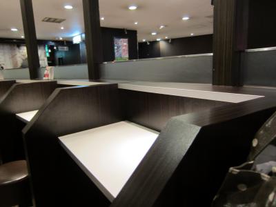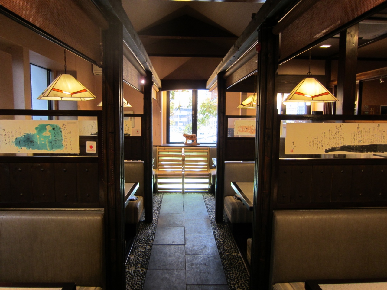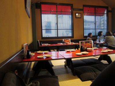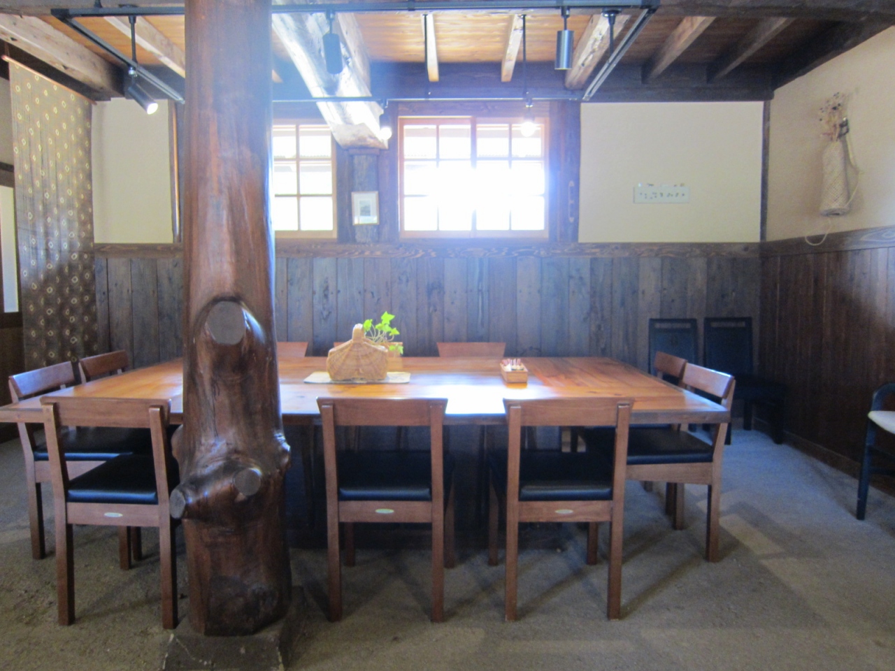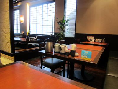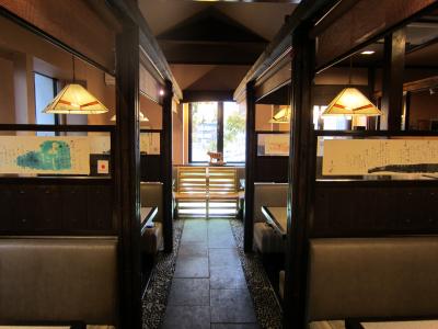 2階がお食事コーナーとなっていて、一人用、窓際用、グループ用とかにいいように色んなタイプのテーブル席がありました。