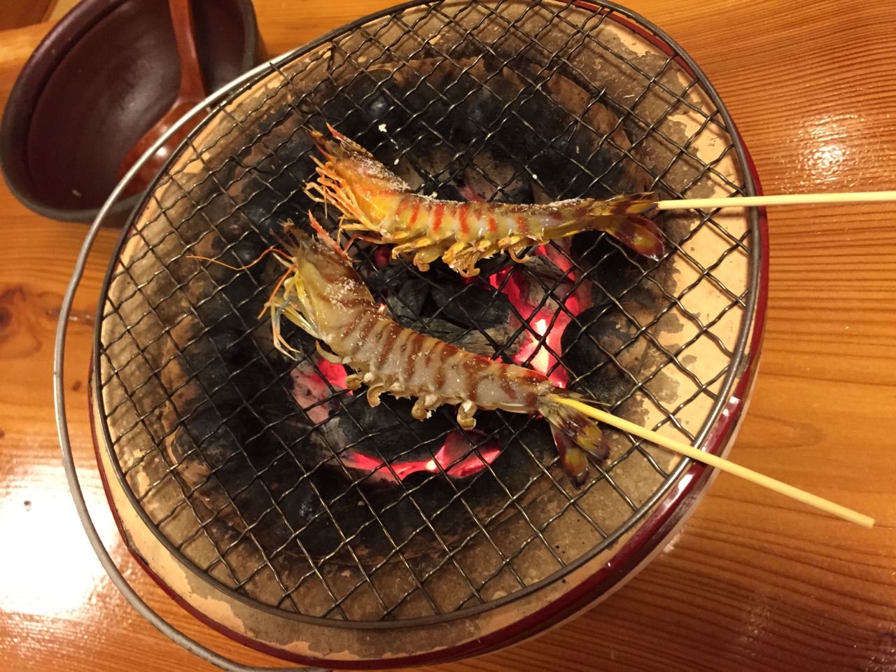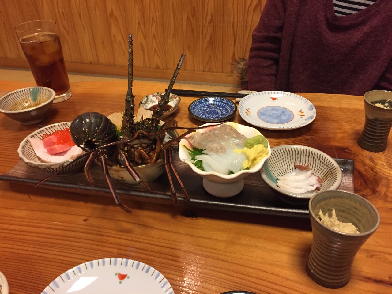 小鉢2品のあと、刺身盛り合わせには、伊勢海老ものっています。