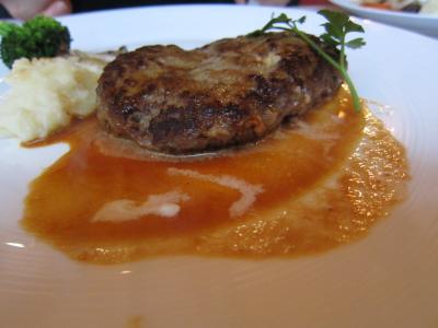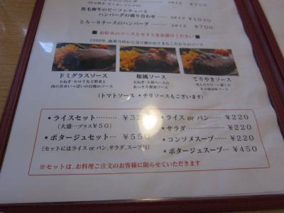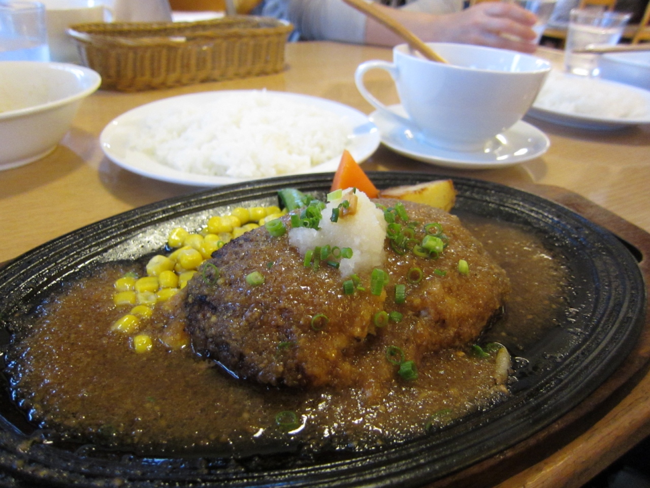 量の方は、そうとう玉ねぎの割合が多そうで、ふわふわのハンバーグで、もう一個付いていてほしいと思いました。