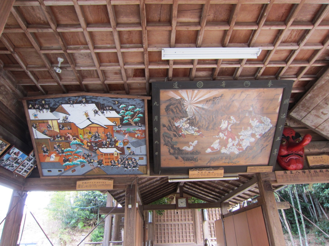 須屋地区の氏神さまで、江戸時代後期に奉納された、三十六歌仙絵馬が境内に飾られています。