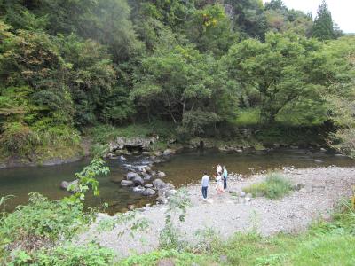 お料理を待つ間は、河原におりて遊ぶこともできました。