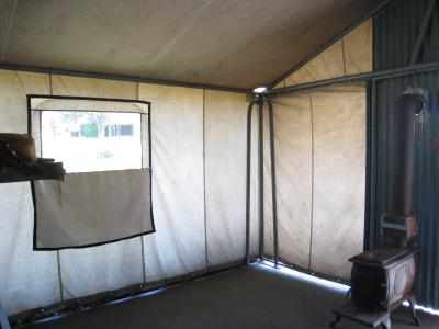 部屋は布と一部だけ木でできており、下には隙間があり、備品は2段ベッドと薪ストーブのみ。