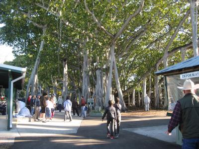 チケット売り場のそばには、大きなバニヤンツリーがあり、エジソンと奥さまの等身大の(たぶん)モニュメントには写真うつりの順番待ちの列が…