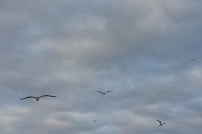 カモメたちが遠くから点のように見えてだんだん近づいてきます。