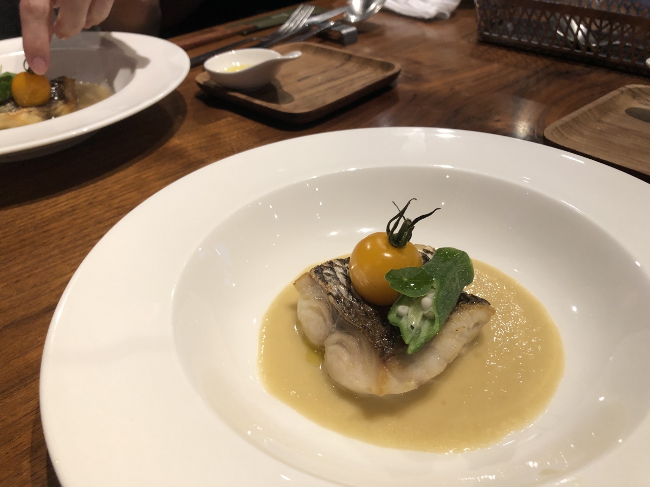 オアフで食べた野性味あるプレートではなく、とてもおしゃれな一皿が来ました。
