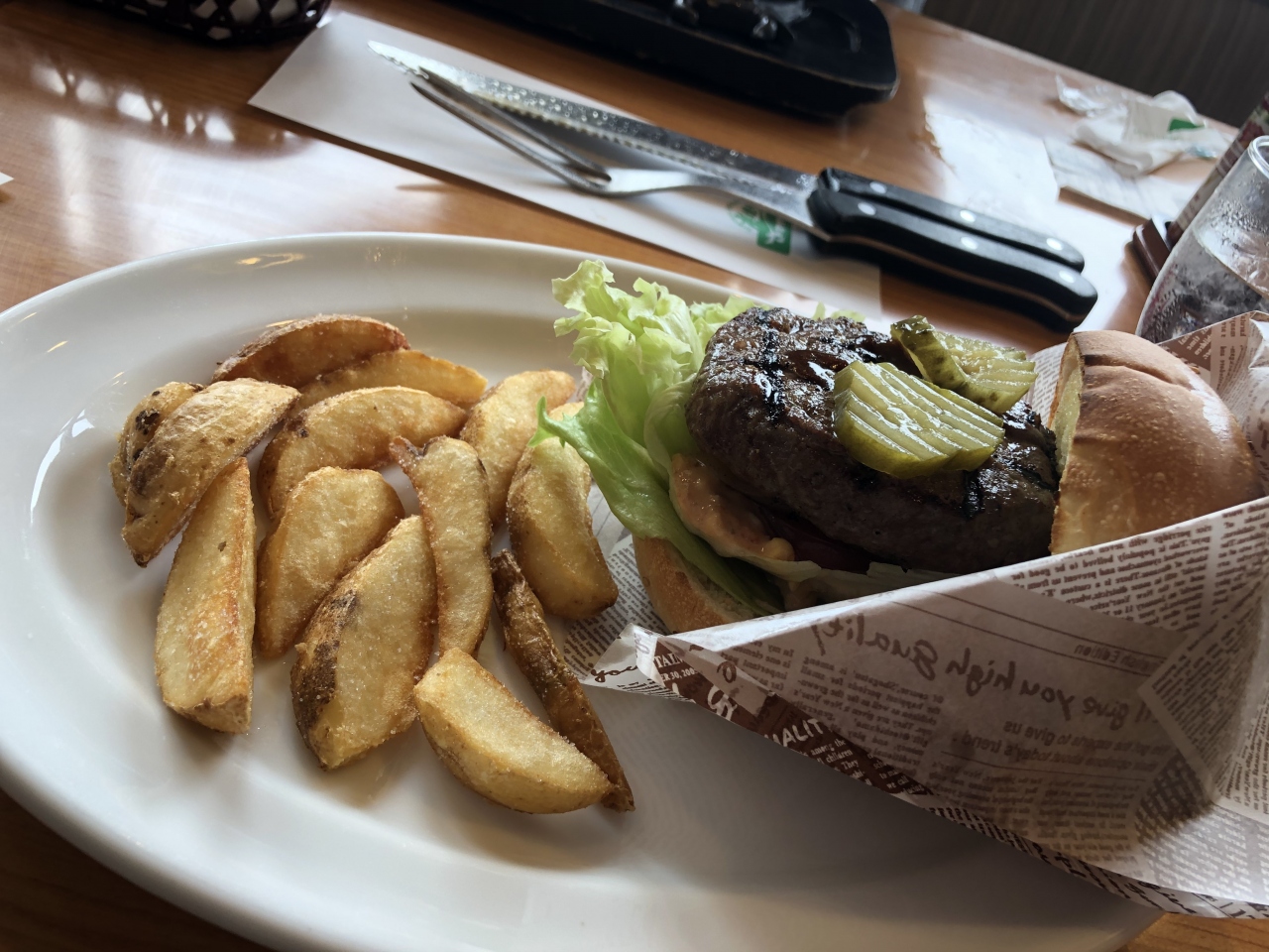 娘たちはげんこつおにぎりハンバーグを、私はハンバーガーをいただきました。