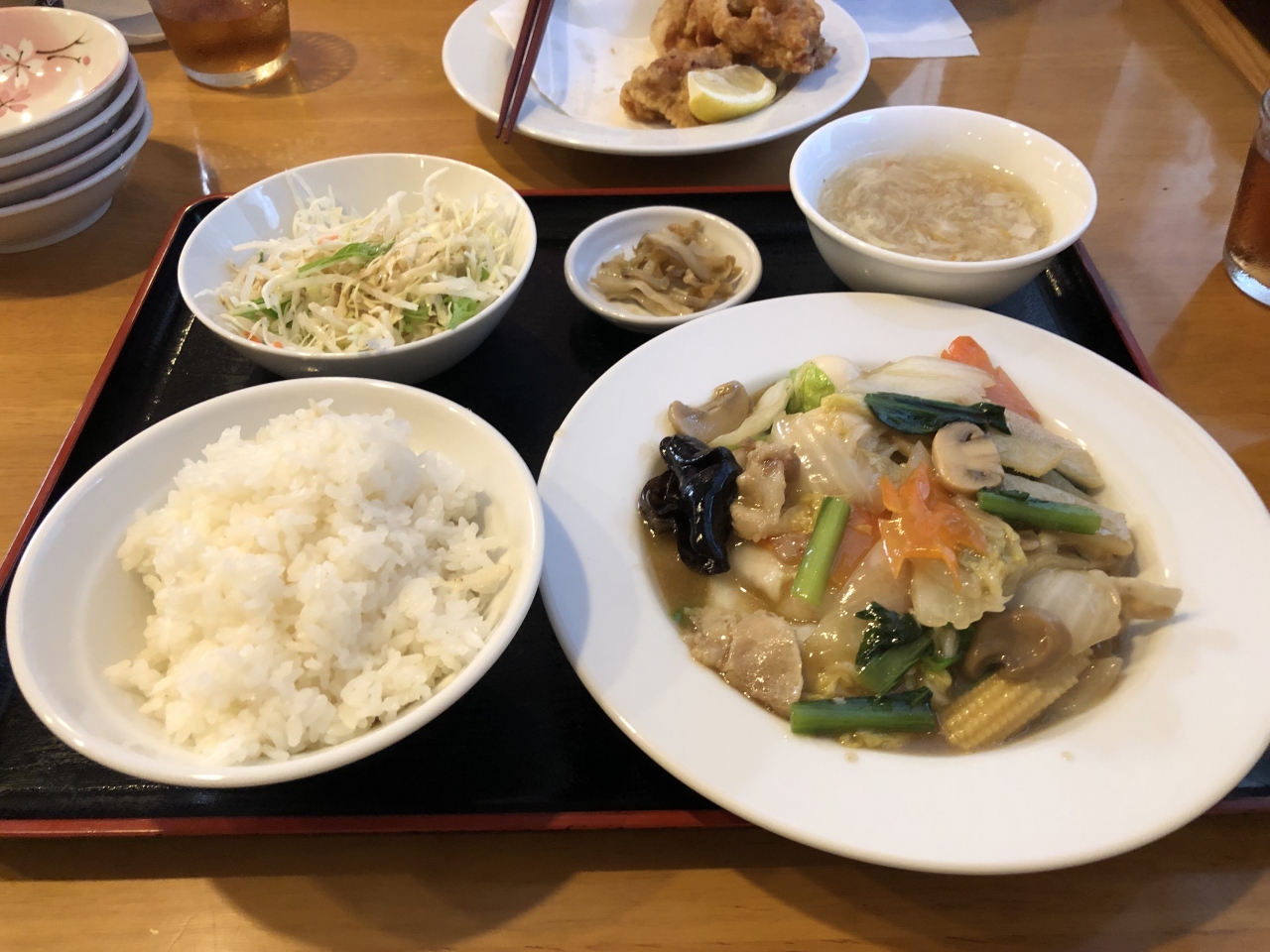 私は八宝菜を定食にしてオーダー、とても美味しかったです。