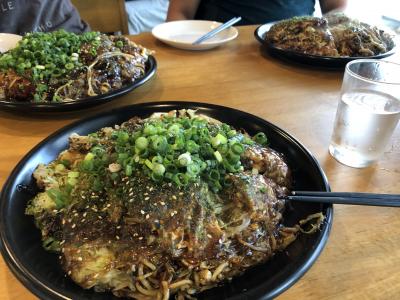 お好み焼きも大きなお皿にネギがたっぷりと、量もたくさん!