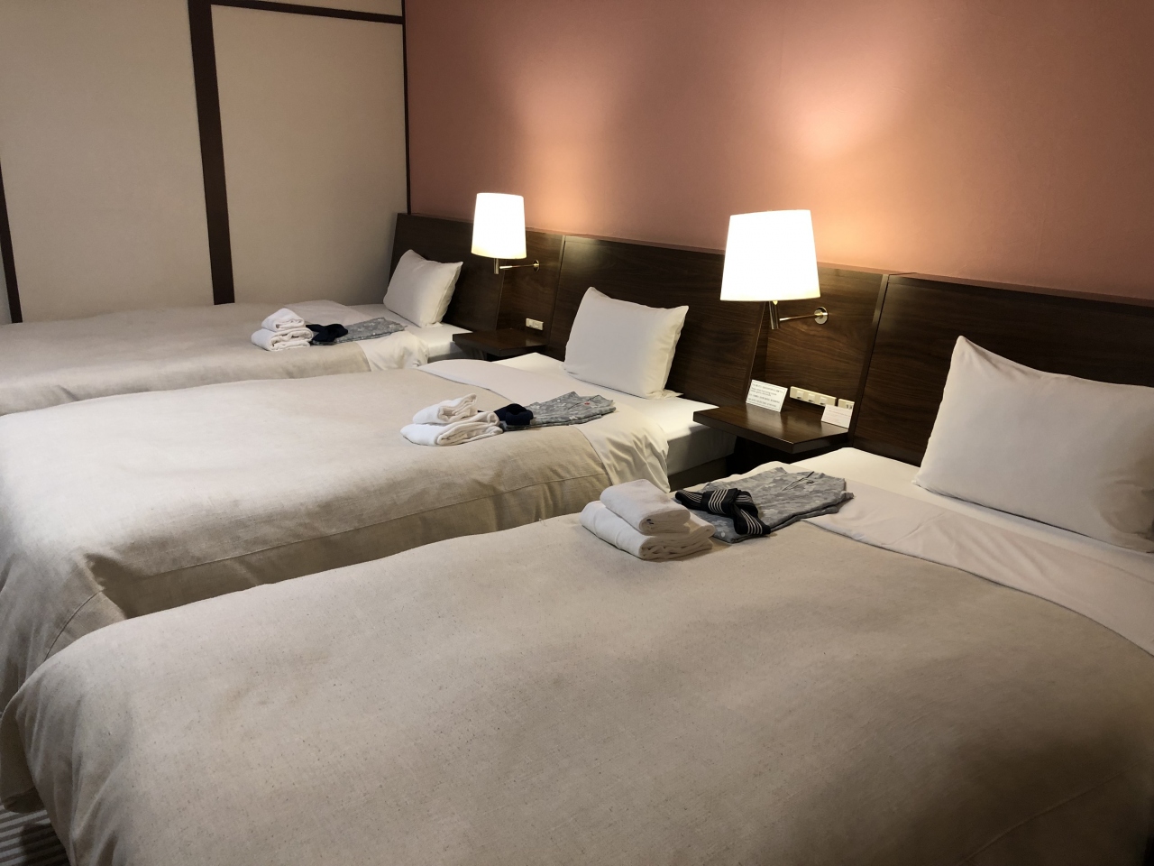 お部屋はシングルベッドが3つ、少し狭いベッドでしたが、一人で寝れるのは楽です。