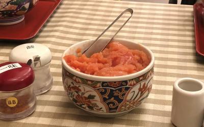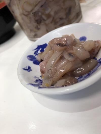天麩羅はもちろんの事、サービスでテーブルに置かれているおかず類と烏賊の塩辛、これは絶品です。- 旅行時期