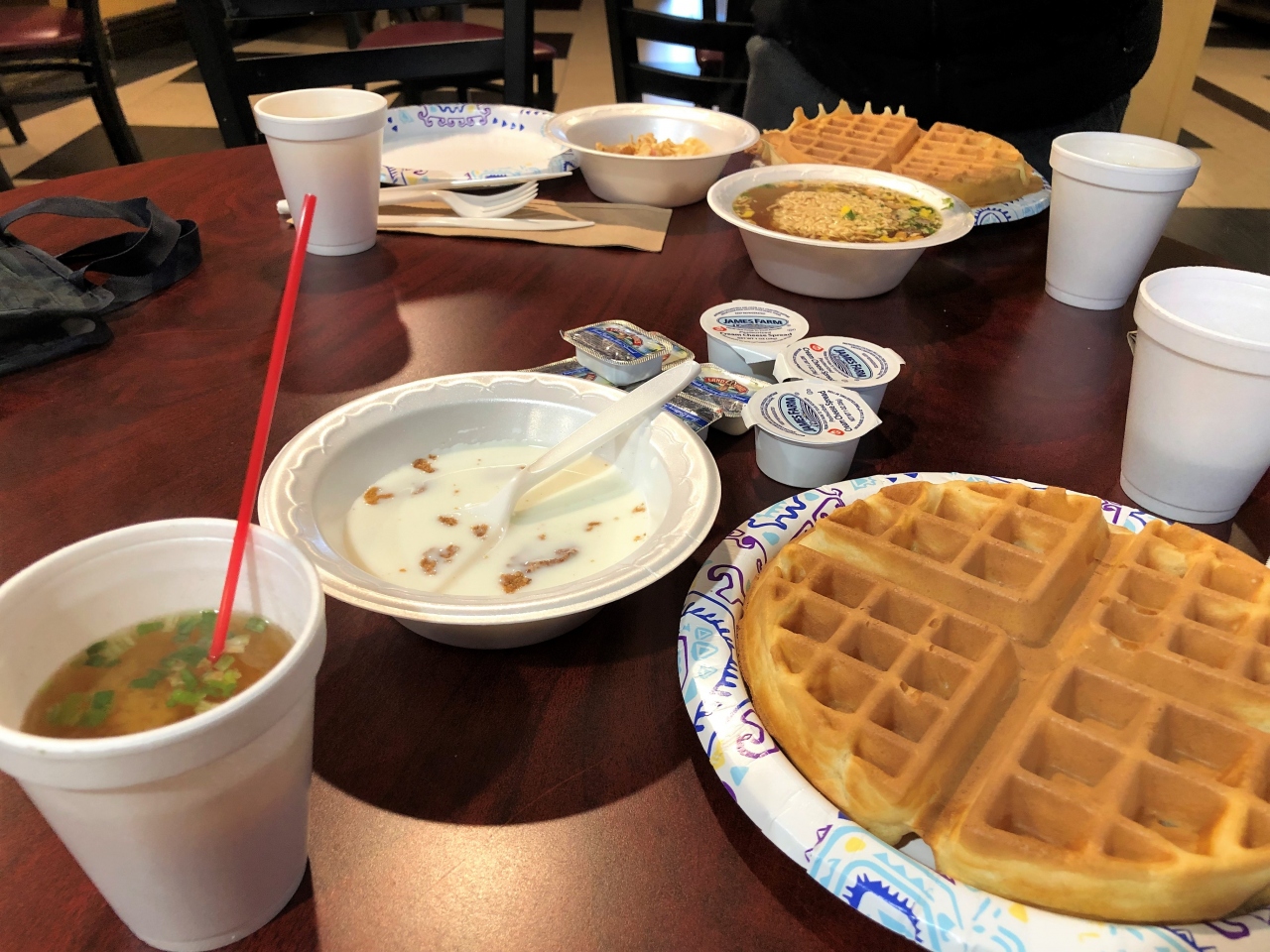 朝食もサービスでついていて少し持参したものをプラスすれば、