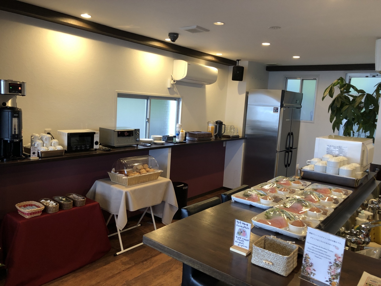 ちょっとした朝食があるとガイドに載っていて、アメリカのモーテル風を想像していましたが…