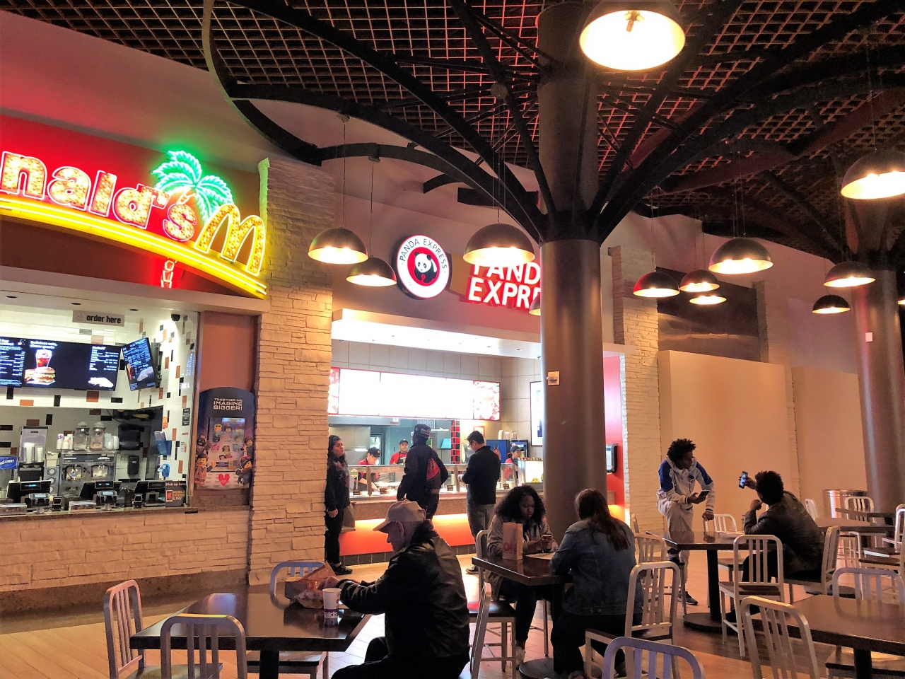フードコートにはたくさんのお店が入っていて、ほかにもレストラン、バー、クラブ、ジムなども揃っています。