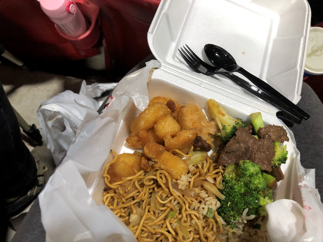 夕食はホテルのお部屋でいただこうと、パンダ・エクスプレスまでお出かけしました。