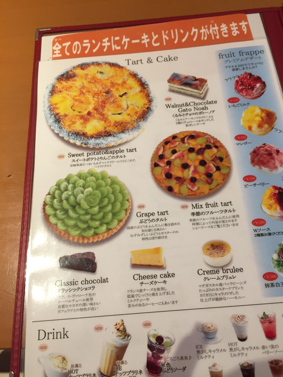 更に、おいしそうなケーキとドリンクも選べます。