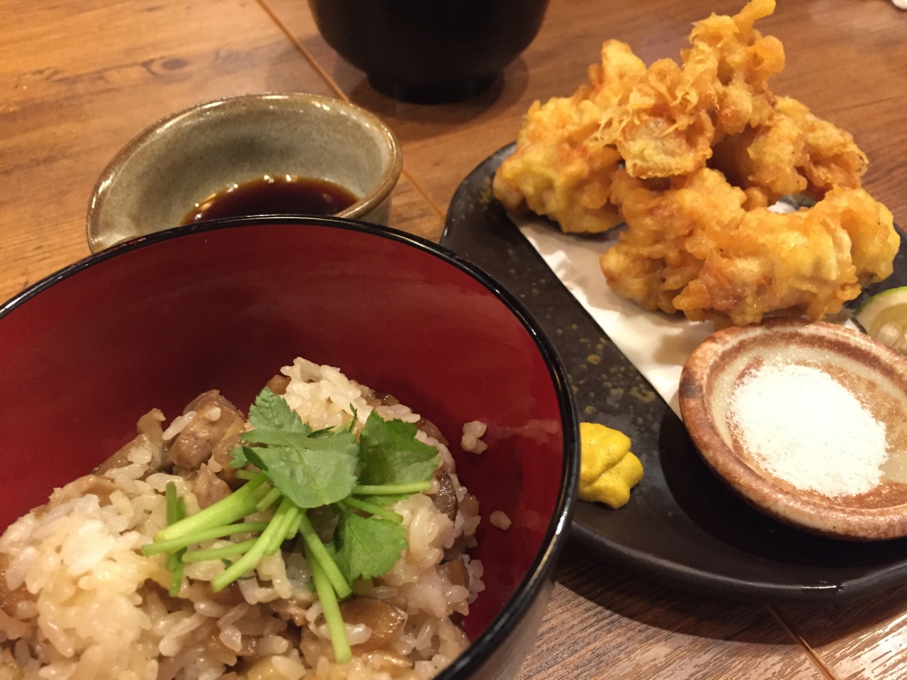 炊き立て鶏釜めしや焼き鳥盛り合わせ、鶏のから揚げなどなどいただきました。