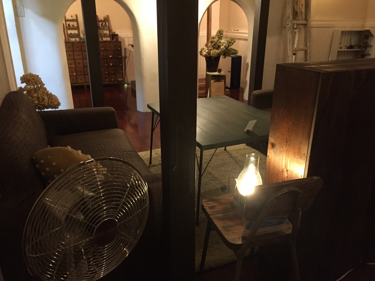店内はいろんな雰囲気でお食事ができそうなテーブルと椅子。