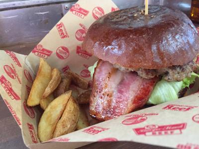 しばらくして大きなベーコン付きのバーガーができあがり。