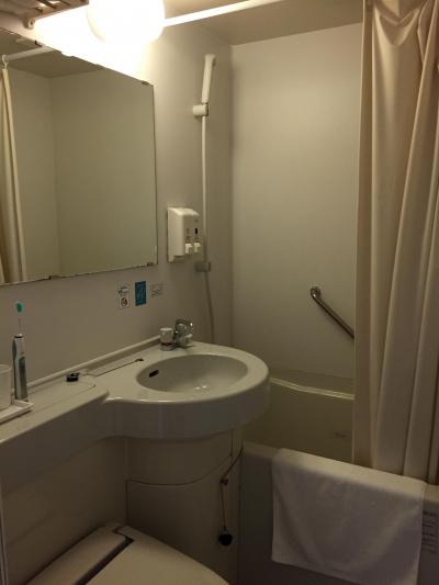 バスルームはシンクが小さく棚もなかったです。