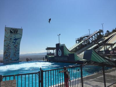 ジャンプ台の下はプールになっていて、スキー板をつけたままジャンプしてそのままプールにドボンと、いつまでも見ていたいほどすごい。