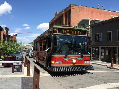 街の中は無料のトロリーバスが走っていました。- 旅行時期