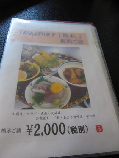 メニューを見ますと、地震の復興メニューという事でお得な食事がありそうなのでそれに決まりました。