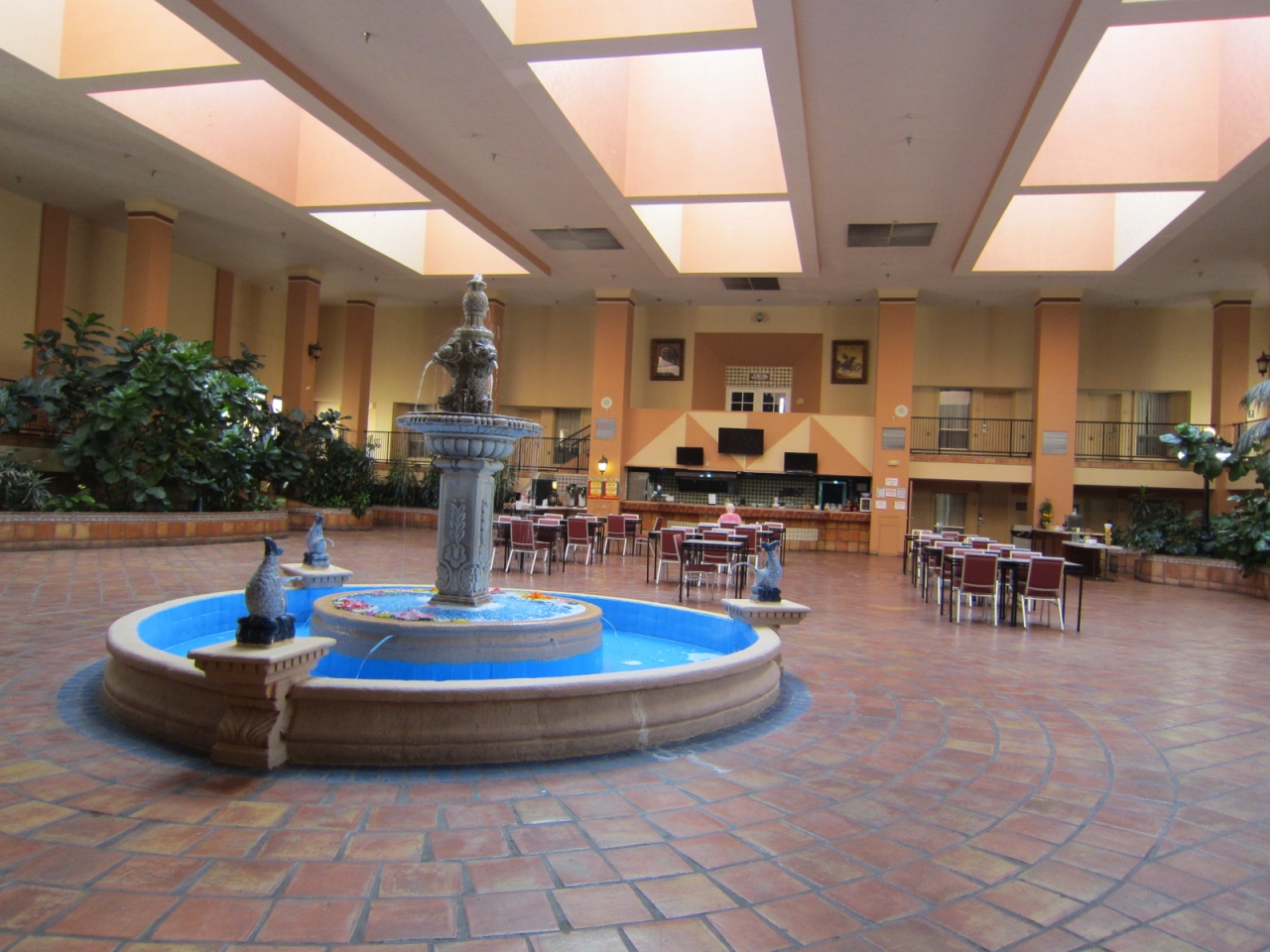 中庭もとてもすてきなお花や唐辛子のモニュメント?、建物とともに思い出に残るところでした。- 旅行時期