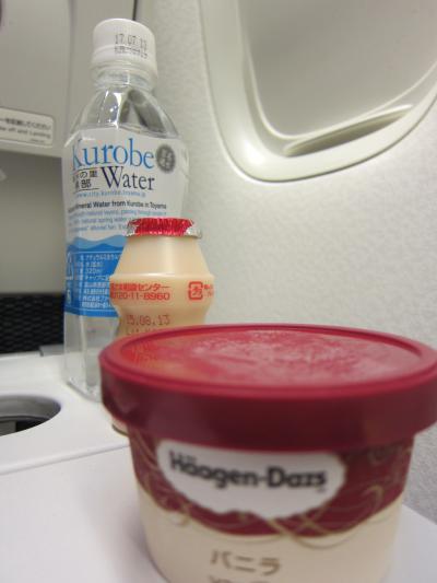 機内食メニューも映像で確認でき、アイスクリームはハーゲンダッツ。