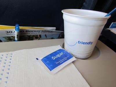 国内線での機内食はそもそも期待していないのですが、コーヒーはサービスででました。