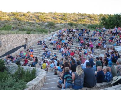100万羽くらいのメキシカン・オヒキコウモリが目の前の洞窟出入り口から飛び立つのを今か今かと待っています。