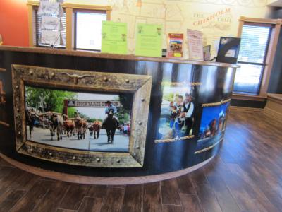 テキサスカウボーイが普通にいる街で、ビジターセンターは通り沿い少し奥まったベージュー色の建物です。