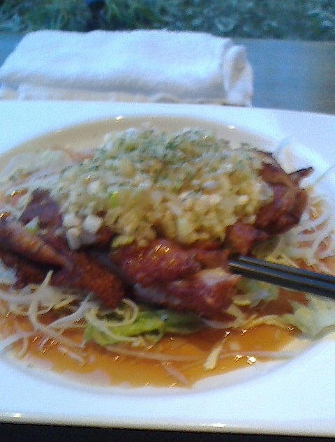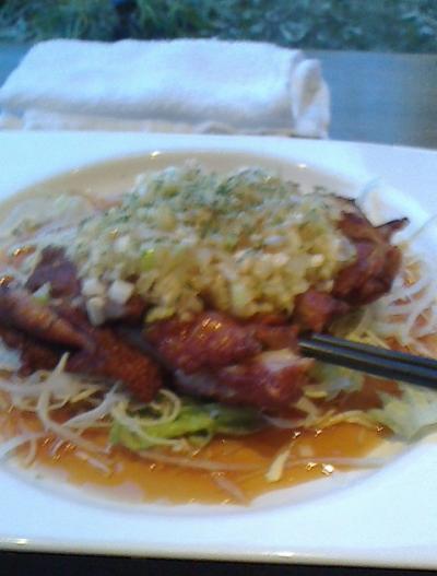 友人と二人、サラダ、海老、チキンから選んで、プラス蟹チャーハンと大食漢の二人は、量も味も大満足でした。- 旅行時期