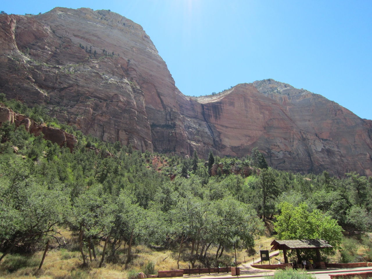 ザイオンの川の高さの所はグランドキャニオンのリムの地層だそうです。