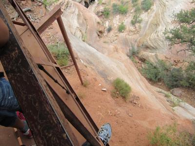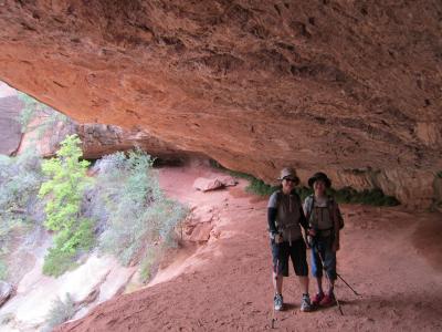 途中大岩の下をくぐったり、くずれそうな足元だったりもしますが、着いた所は、キャニオンが見渡せる景色。