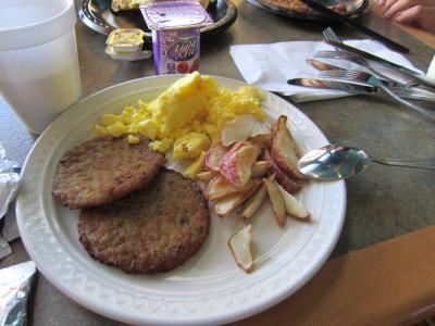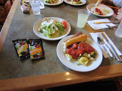 以前ここのカフェテリアで食事をして後悔しましたので、今回は、前の宿でタンシチューを作ってきましたので、ここでの夕食は豪華なものとなりました。