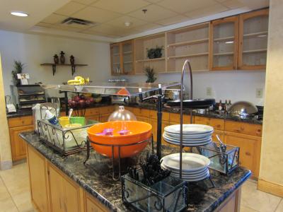 部屋は、フルキッチン(備品もすべて付き)、ダイニングテーブル、1ベッドルーム、リビング(ソファーがクイーンベッドに早変わり)、ジャグジー付きバスルーム、テラスなどがあり、これに、夕方の軽食と朝食バフェ、ジム、プールなどがあります。