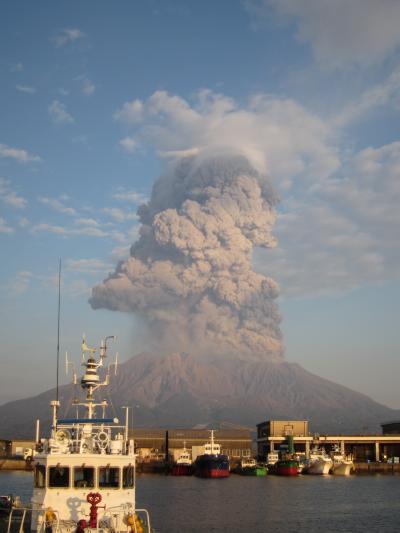 完全な島だった桜島が大隅半島と陸続きに。