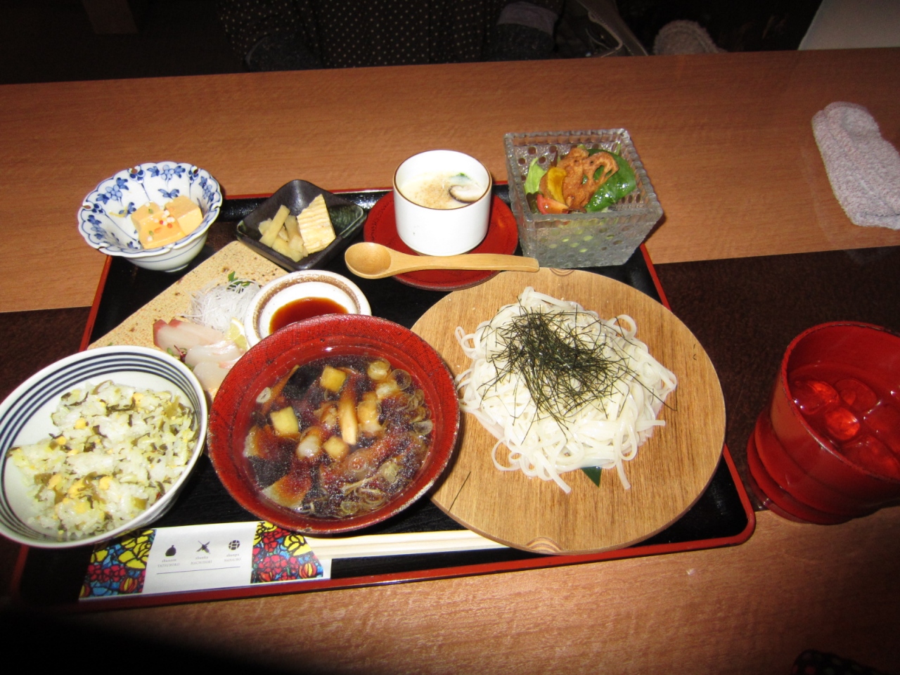 限定お昼ご飯の中から、選べる稲庭うどん御膳をオーダー、うどんもあったか、冷たい、つけ麺ふうをチョイスすることができました。