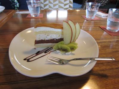 友人たちのケーキセットに付いている、りんごは黄色く変色その上、芯の部分も残ったまま、ケーキもうすーい。