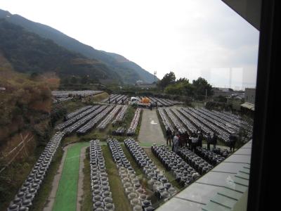 団体客は200人ほど利用できるようですし、個人客は黒酢の壺畑がみえる二階レストランで、いただきます。
