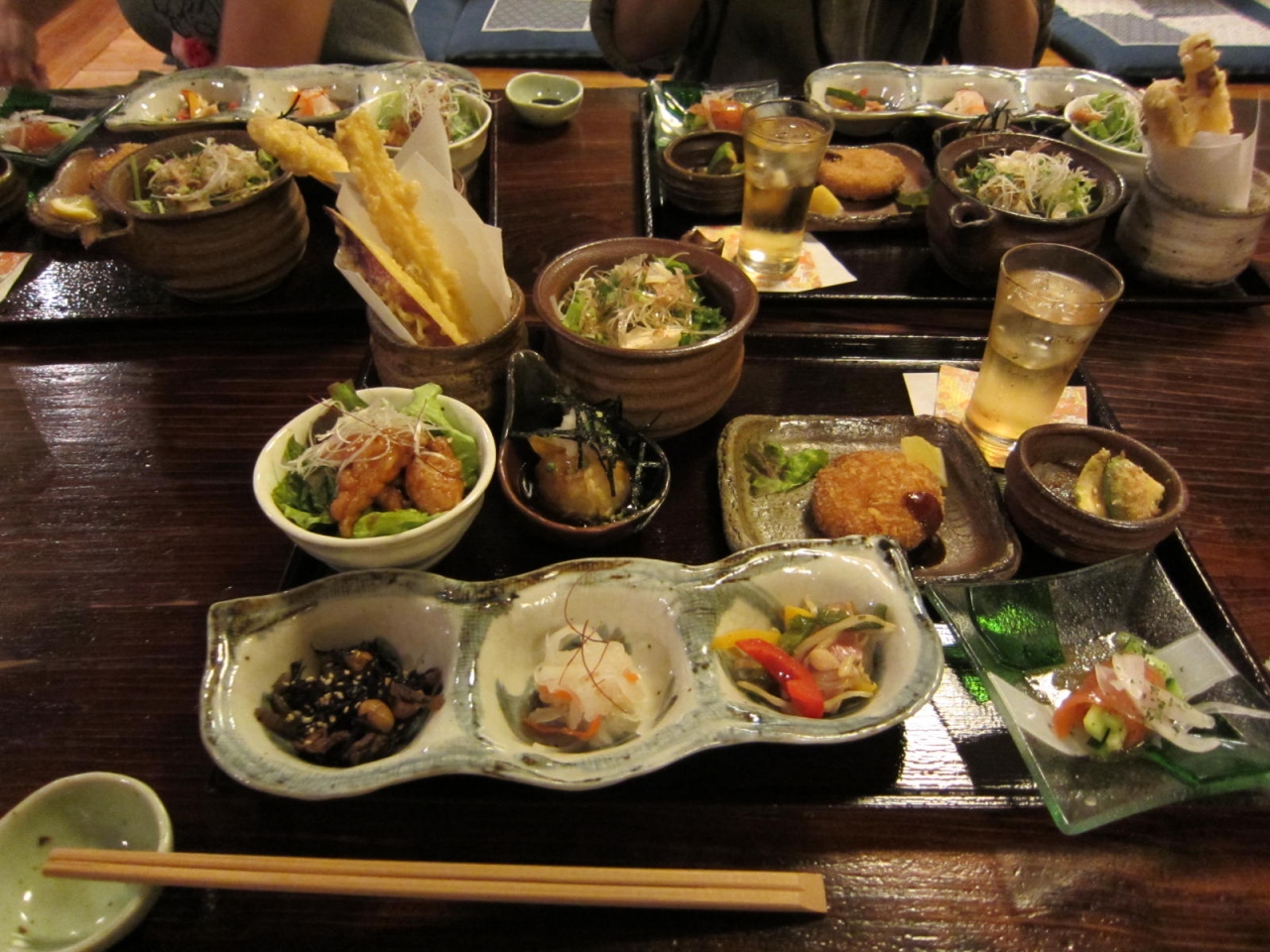 まず一の膳…色んな小鉢9品、メイン料理(肉、魚など3種類位からチョイス)、ごはん、デザート、ドリンクなど13品もついて、お値段は1500円。
