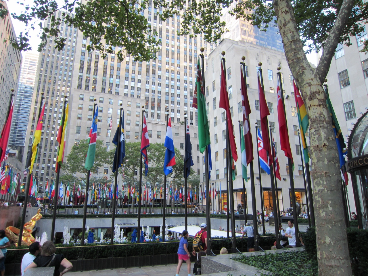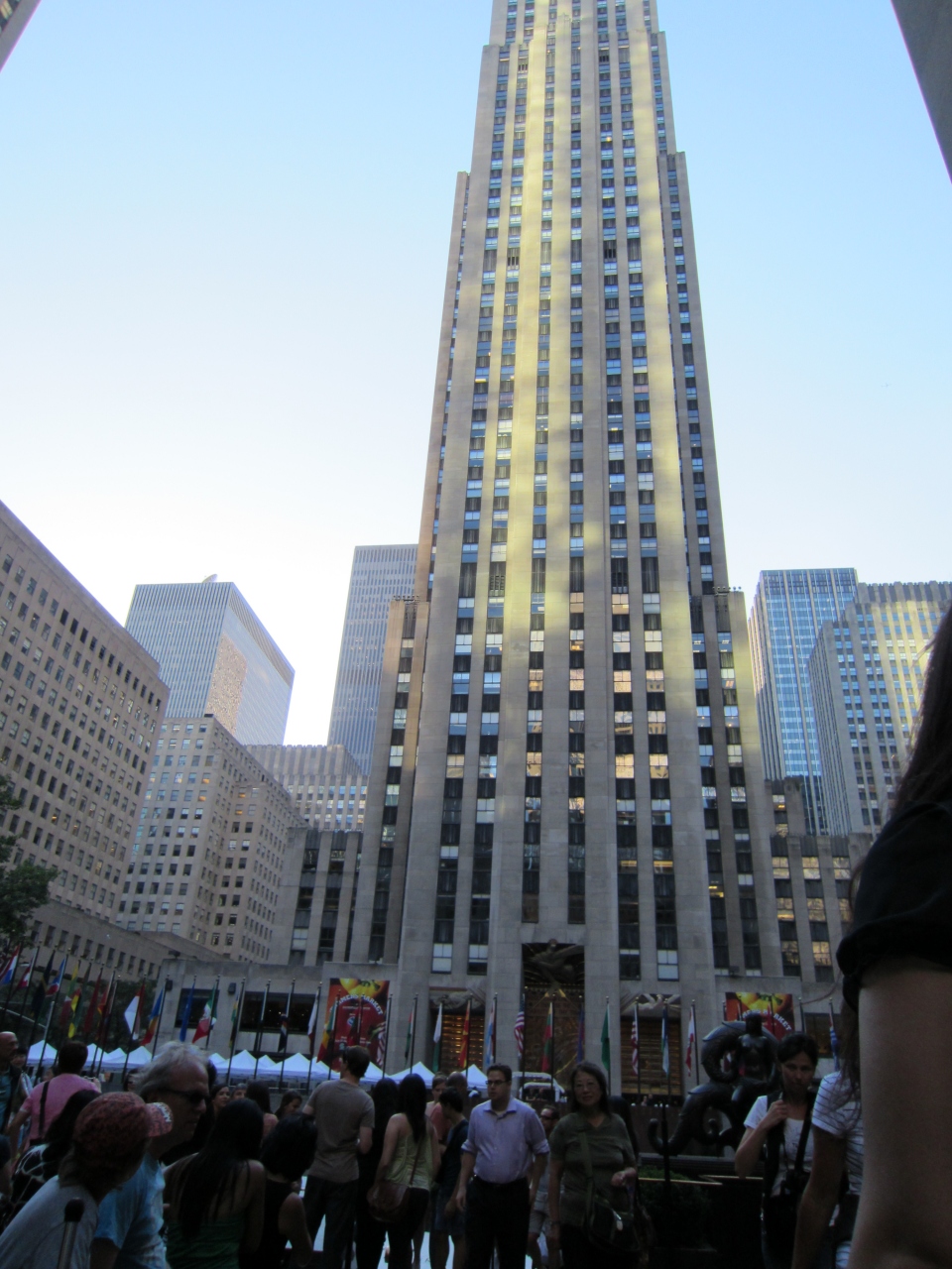 GEビルの正面にはプロメテウス像が、そのすぐ後ろが、有名なクリスマスツリーの場所になります。