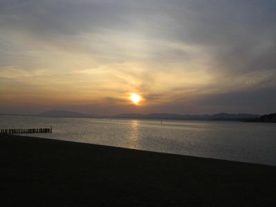 今日の神社巡り旅の最後は、宍道湖の夕日です。