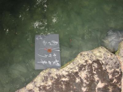 友人たちも、占い用紙をいただいて、鏡の池へと向かいます。