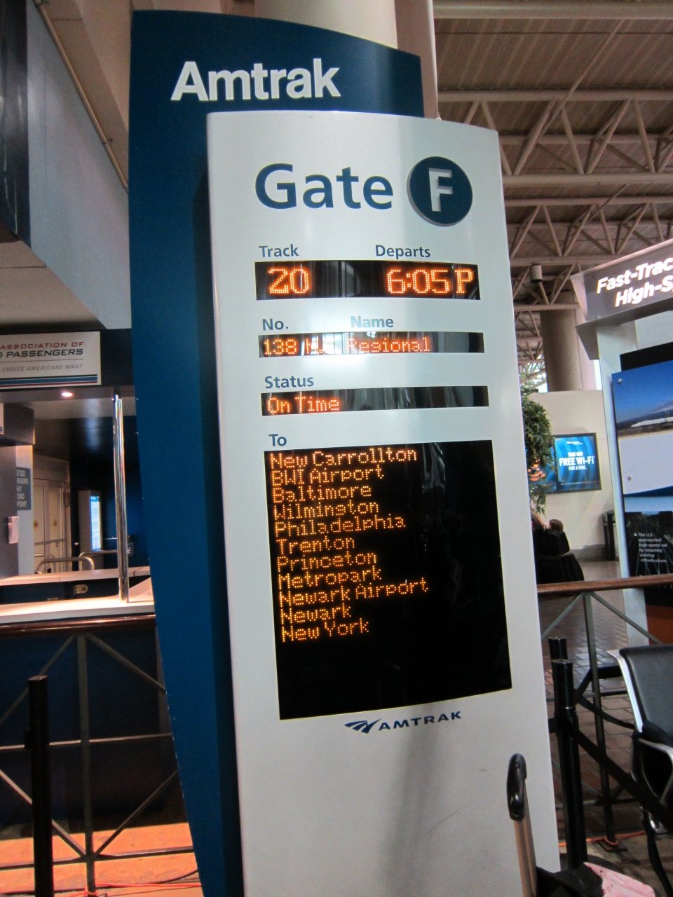 ここワシントンDC駅では、ゲート番号が早めに表示されましたので、余裕もって列に並ぶことができました。