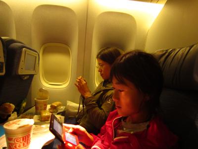 ゲートの出発時刻表示が、10:30発が10:50になり、11:15になりといやな感じでしたが、それでも11:30には離陸できました。