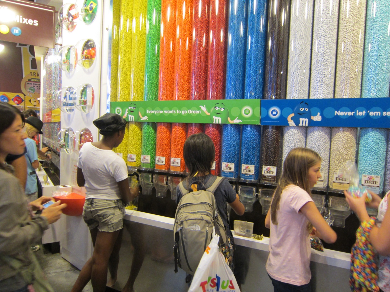 パステルカラー、ビビットカラーなどなど、チョコの壁が延々と続いています。