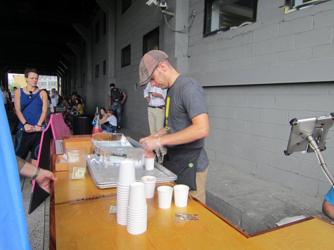 ハドソン川を眺めながら、木でできたデッキチェアーでのんびりできるように、なっています。