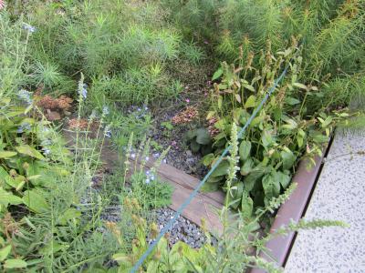 線路や枕木も残してあり、花、木、草などの緑がいっぱい。