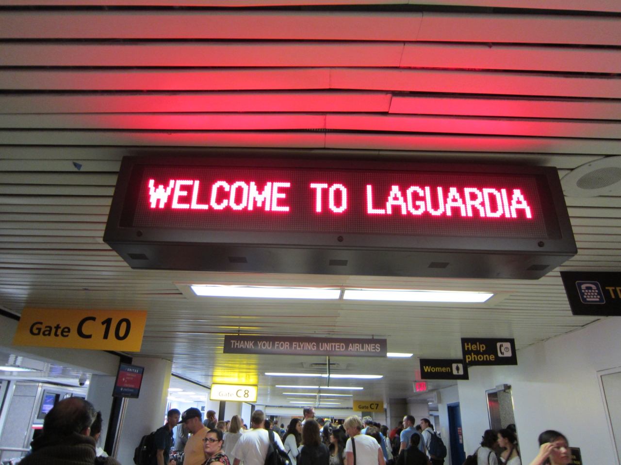 飛行機遅れて、23:30にここに到着しましたが、ようこそラガーディアへのSIGNに、疲れが軽くなりました。